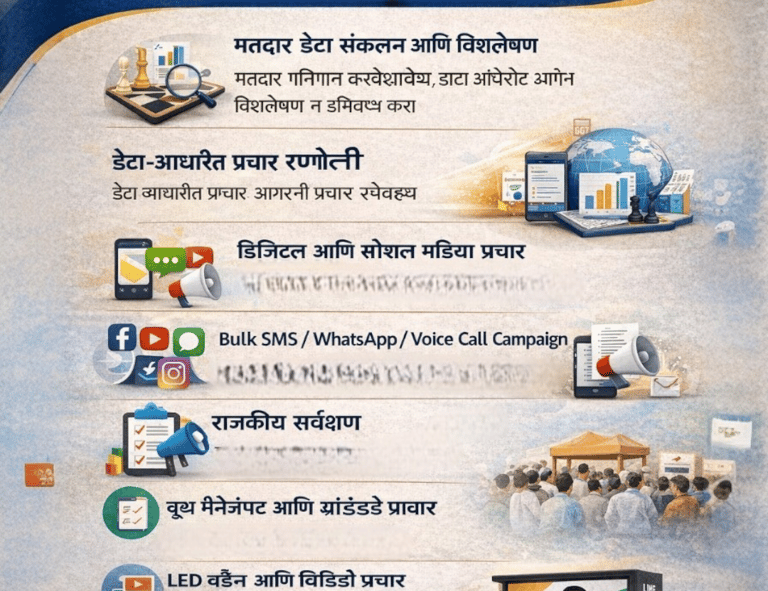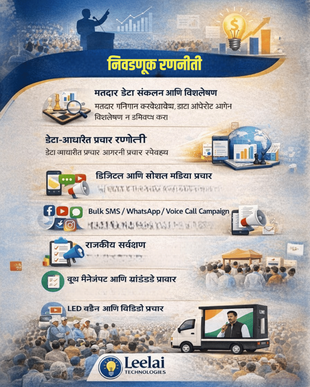 निवडणूक मोहिमांसाठी तंत्रज्ञान-सक्षम उपाय आणि रणनीती आम्ही पुरवतो.